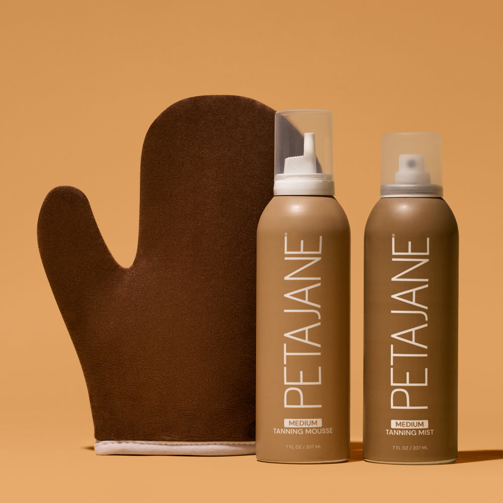 • Self-Tanning Mousse: Shower before application. Exfoliate at least 24 hours prior to application. Avoid moisturizer or lotion at least 24 hours before applying. Shake well and pump the Tanning Mousse onto the PJB Mitt. Apply evenly in upward circular motions, starting with legs and working your way up. Work in small sections, as the tan dries quickly. With the leftover mousse on the mitt, cover hard to perfect areas such as hands and feet last. Your tan will develop in 6-8 hours. Shower in the morning, pat dry, and show off your tan.