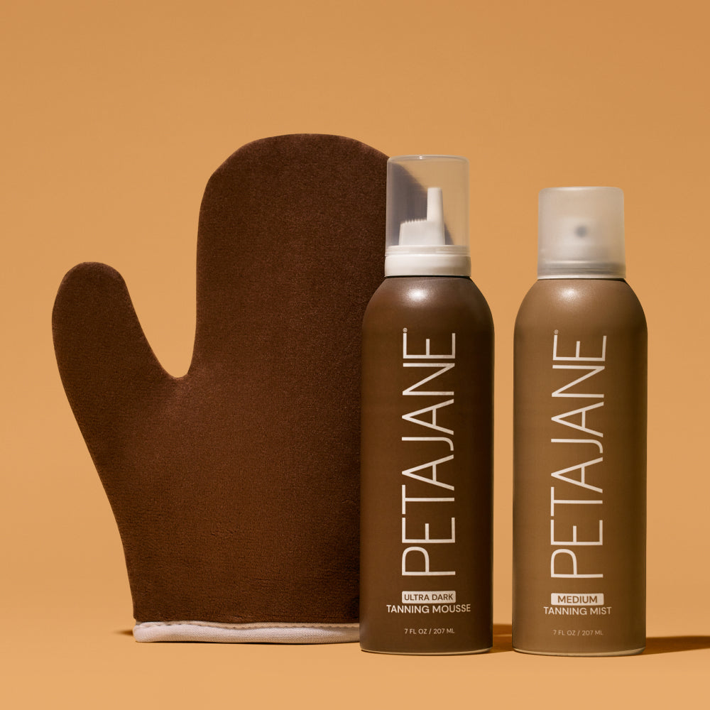 • Self-Tanning Mousse: Shower before application. Exfoliate at least 24 hours prior to application. Avoid moisturizer or lotion at least 24 hours before applying. Shake well and pump the Tanning Mousse onto the PJB Mitt. Apply evenly in upward circular motions, starting with legs and working your way up. Work in small sections, as the tan dries quickly. With the leftover mousse on the mitt, cover hard to perfect areas such as hands and feet last. Your tan will develop in 6-8 hours. Shower in the morning, pat dry, and show off your tan.