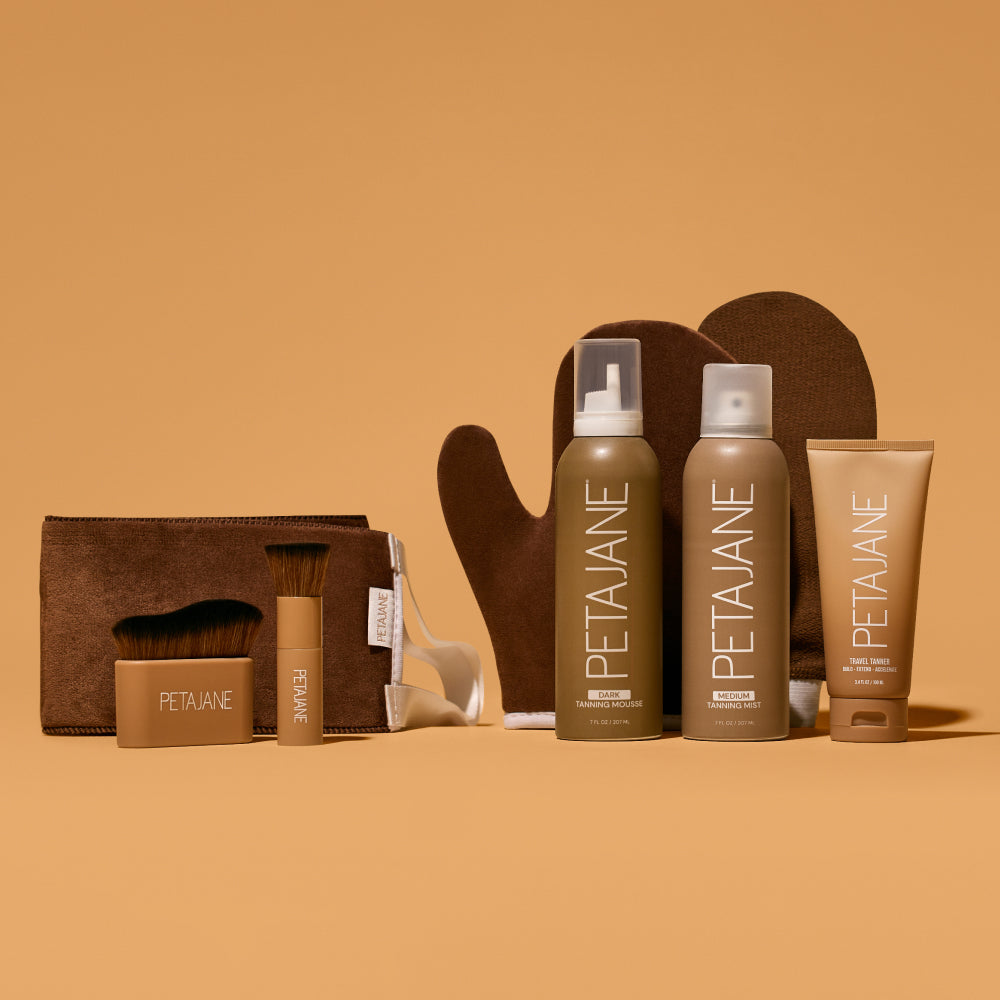 Self-Tanning Mousse: Shower before application. Exfoliate at least 24 hours prior to application. Avoid moisturizer or lotion at least 24 hours before applying. Shake well and pump the Tanning Mousse onto the PJB Mitt. Apply evenly in upward circular motions, starting with legs and working your way up. Work in small sections, as the tan dries quickly. With the leftover mousse on the mitt, cover hard to perfect areas such as hands and feet last. Your tan will develop in 6-8 hours. Shower in the morning, pat dry, and show off your tan.
