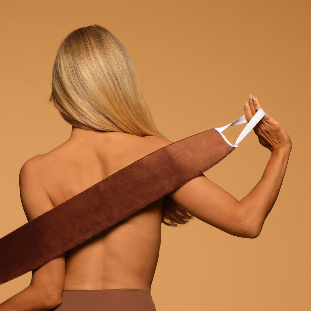 Exfoliating Mitt: Slightly dampen the exfoliating mitt under warm water. Begin Gently: Slip your hand into the mitt and use a gentle, circular motion to exfoliate the desired area. Start softly to avoid skin irritation. Focus on Areas: Pay extra attention to areas where self-tan tends to build up or become uneven, such as elbows, knees, ankles, and wrists. Adjust Pressure: Depending on your comfort level and the intensity of exfoliation needed, you can apply more pressure for a deeper exfoliation or keep it gentle for a milder scrub. Rinse and Dry: After exfoliating, rinse your skin thoroughly with warm water to remove any remaining exfoliation residue. Pat your skin dry with a clean towel. For optimal results: Wait at least 24 hours after exfoliation before applying a new layer of self-tan.