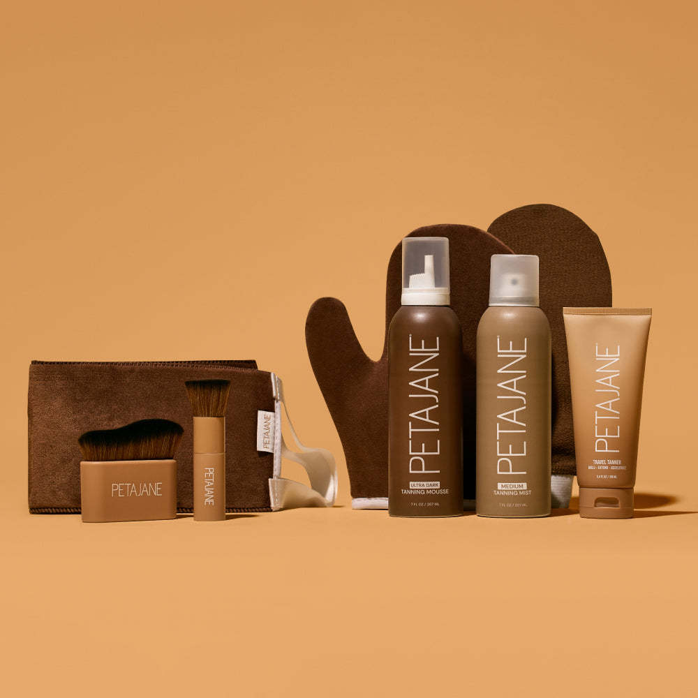 • Self-Tanning Mousse: Shower before application. Exfoliate at least 24 hours prior to application. Avoid moisturizer or lotion at least 24 hours before applying. Shake well and pump the Tanning Mousse onto the PJB Mitt. Apply evenly in upward circular motions, starting with legs and working your way up. Work in small sections, as the tan dries quickly. With the leftover mousse on the mitt, cover hard to perfect areas such as hands and feet last. Your tan will develop in 6-8 hours. Shower in the morning, pat dry, and show off your tan.